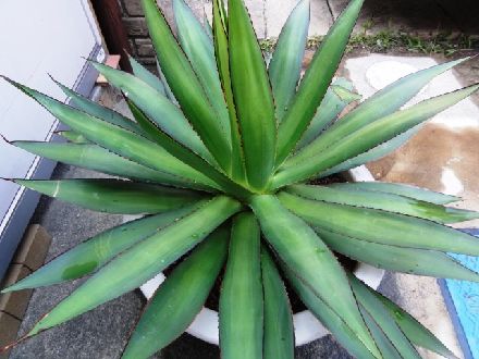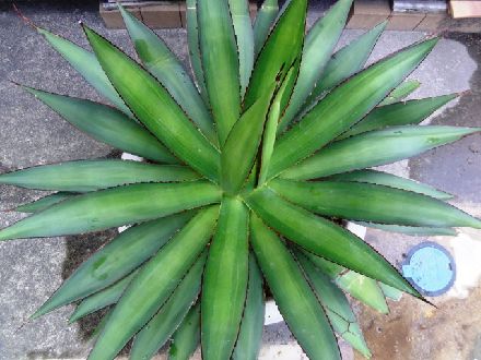アガベ・アテナータ×オカヒーとのハイブリッドと言われている品種です。この個体は薄い中斑になっています。