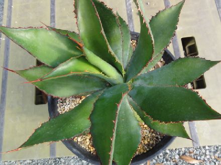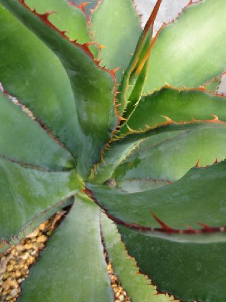 パリーの仲間でアガベ・グアダラハナ。 赤い不規則な棘が特徴です。