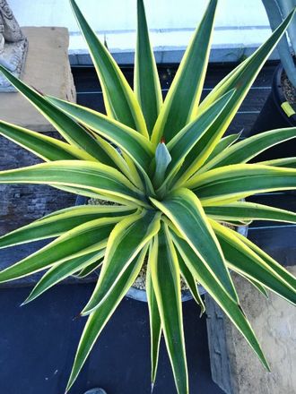 アガベ・デスメティアナ(ベネゼイラ・アガベ)の覆輪品種のかわり種で深いイエローが綺麗。