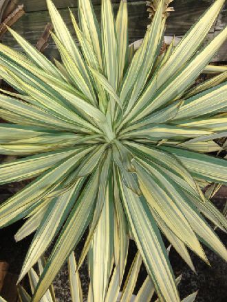 ユッカ・グロリオーサの斑入種で通称“ライジングサン”と言われるタイプ。