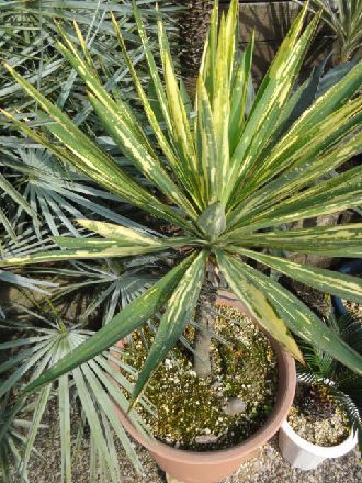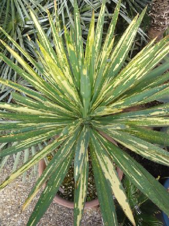 ユッカ・グロリオーサの斑入種で通称“ちり斑”と言われるタイプ。