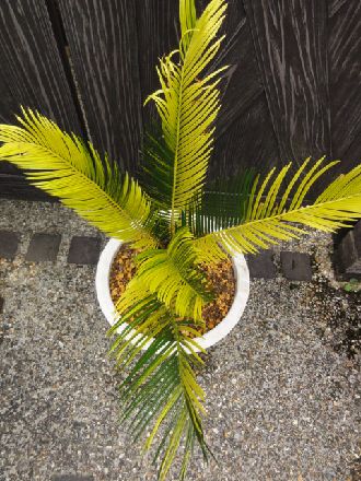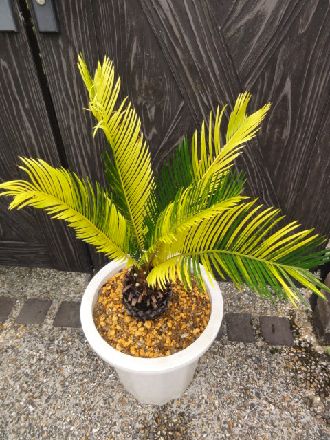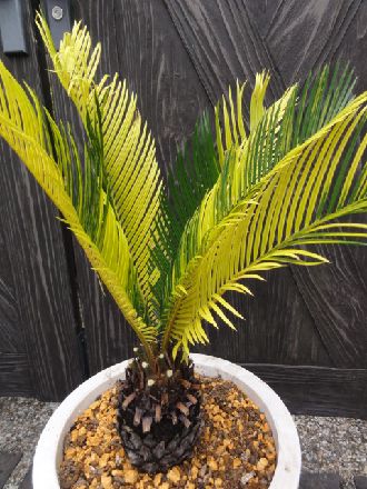 日本国内でよく見かけるソテツの斑入。 濃いイエローとグリーンのコントラストがいいです。