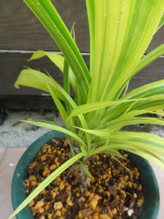 広葉タコノキの斑入りです。この品種は、国内では流通はありません。
