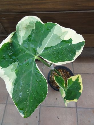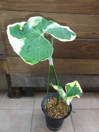最近、たまにタイで見かけます。多分、アロカシアあたりの品種ではないかと